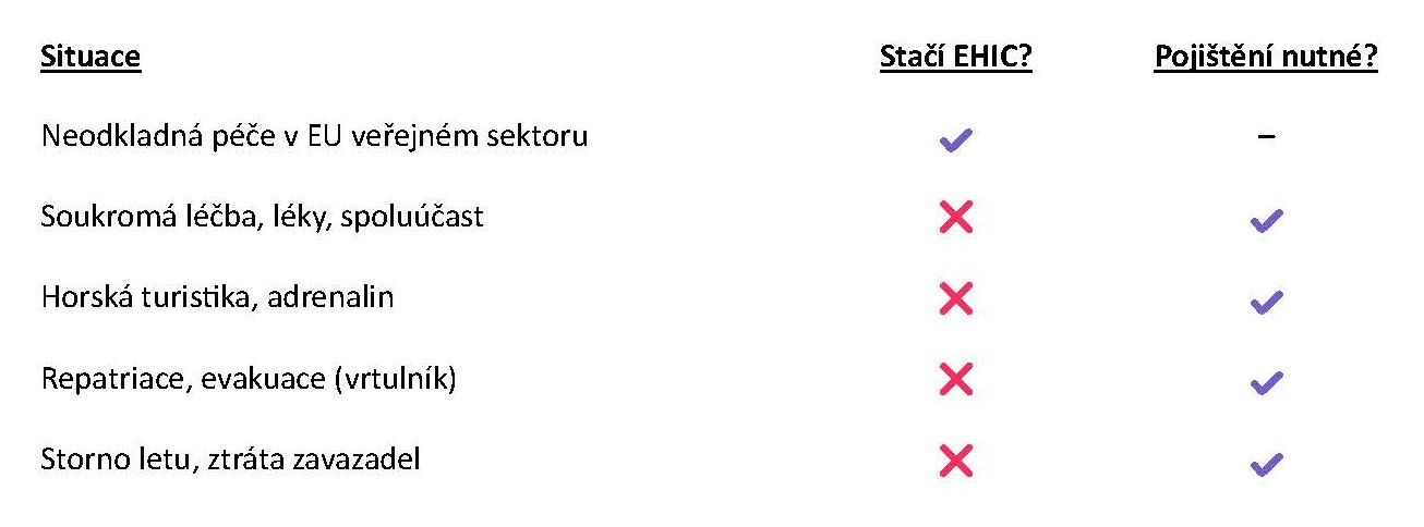 Evropský průkaz pojištěnce (EHIC) sice poskytuje základní ochranu v rámci veřejného zdravotnictví, ale v mnoha situacích – a těch není málo – zkrátka nestačí.